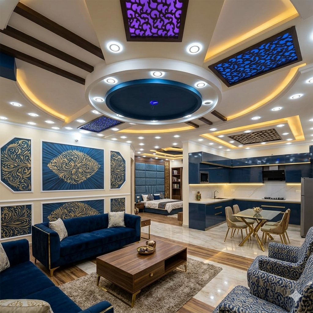 Whether you prefer modern minimalist ceilings, elegant layered designs, geometric patterns, or luxury decorative false ceilings, Aarambh Divine Space ensures your ceiling perfectly complements your interior décor. Along with false ceiling designing, we also provide complete home interior solutions, including bedrooms, kitchens, wardrobes, TV units, and living room interiors—ensuring a cohesive and beautifully designed home.