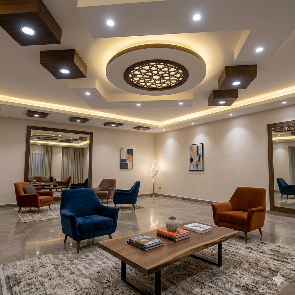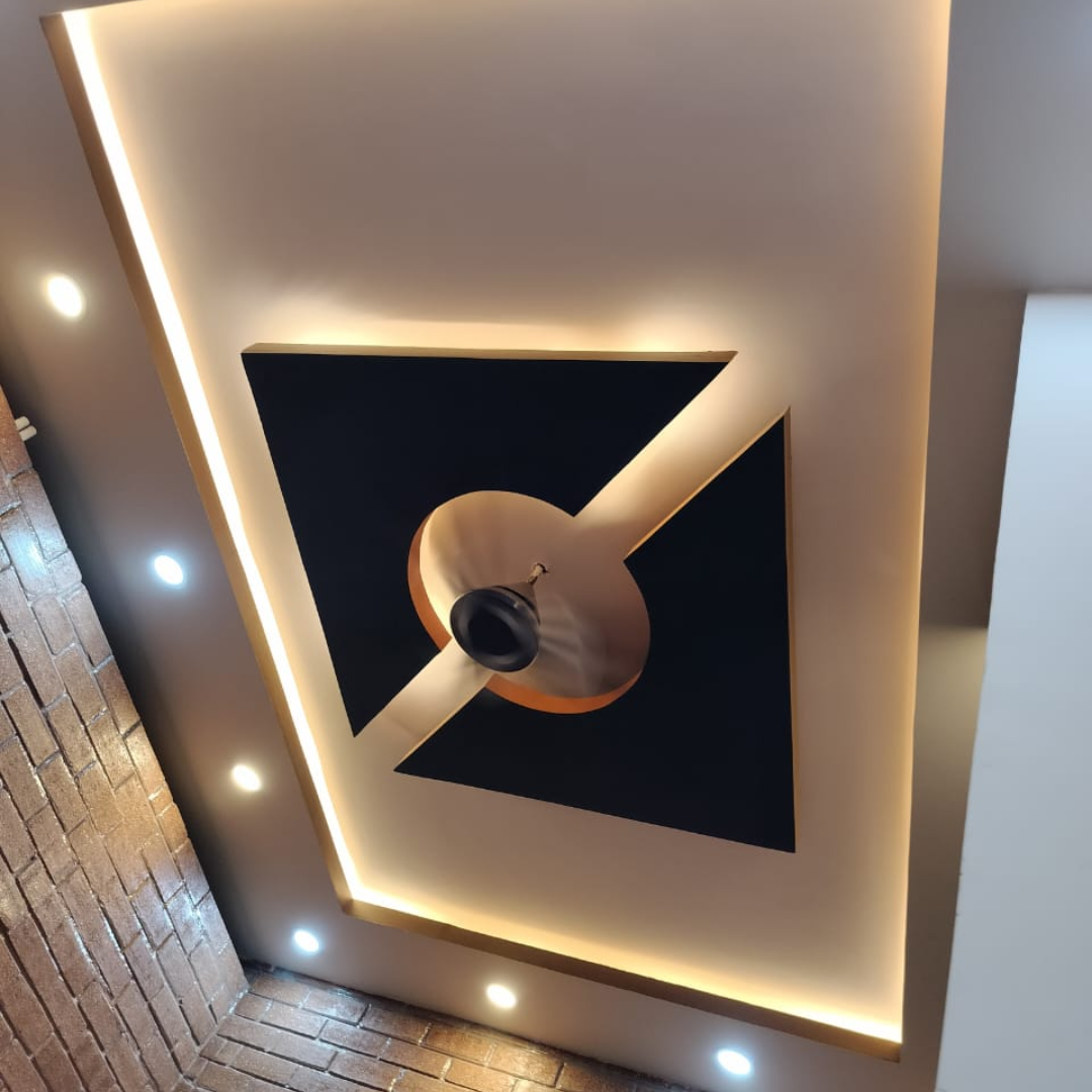 False ceiling solutions designed for homes, offices, showrooms, and commercial spaces to improve aesthetics and lighting.