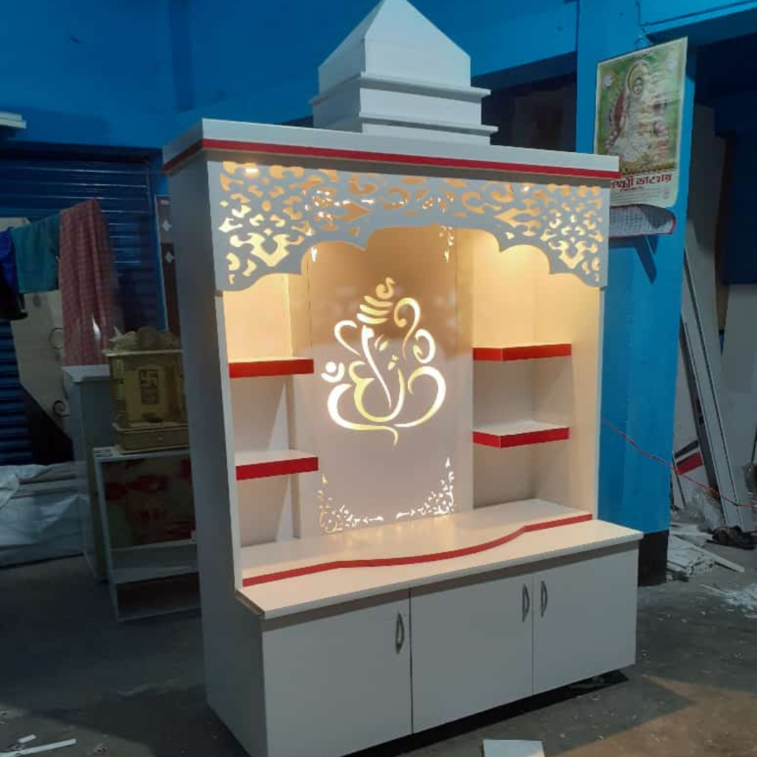 Our designs blend traditional aesthetics with modern functionality, creating a sacred space that feels serene, organized, and truly divine.