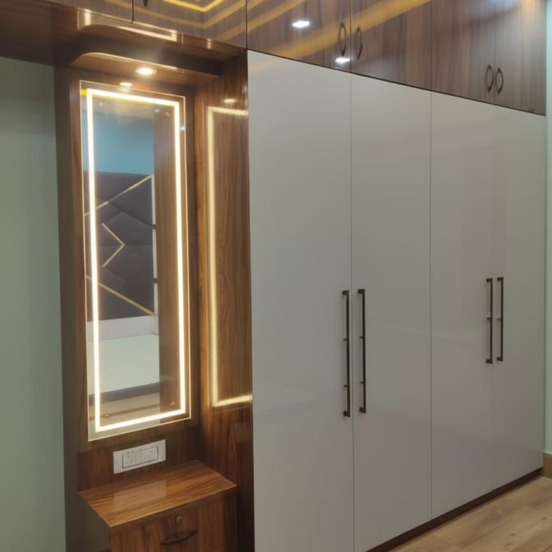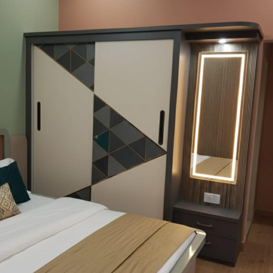 Aarambh Divine Space provides complete Wardrobe Interior Designing solutions, including customized wardrobe layouts, modular storage systems, sliding doors, and elegant finishes. Whether you need a compact wardrobe for a small bedroom or a luxurious walk-in wardrobe, we create designs that combine functionality, organization, and modern style.
